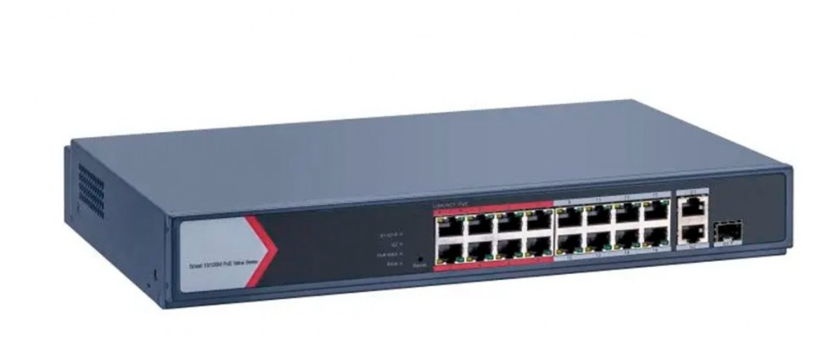 – Puerto PoE de 16 × 10/100 Mbps, 1 × combo Gigabit, 1 × puerto Gigabit RJ45.
